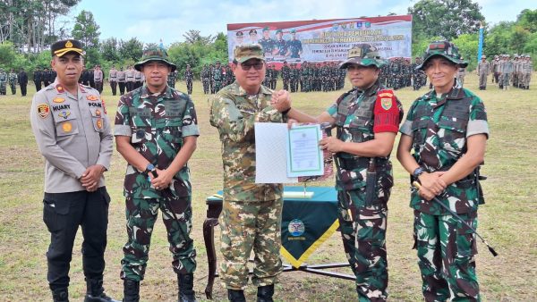 Dengan berseragam retret, Bupati Beltim, Kamarudin Muten menjadi Inspektur Upacara. Bupati meninjau pasukan serta secara simbolis menyematkan tanda peserta Kegiatan TMMD ke 125 tahun 2025 dan penyerahan peralatan TMMD tahun 2025.